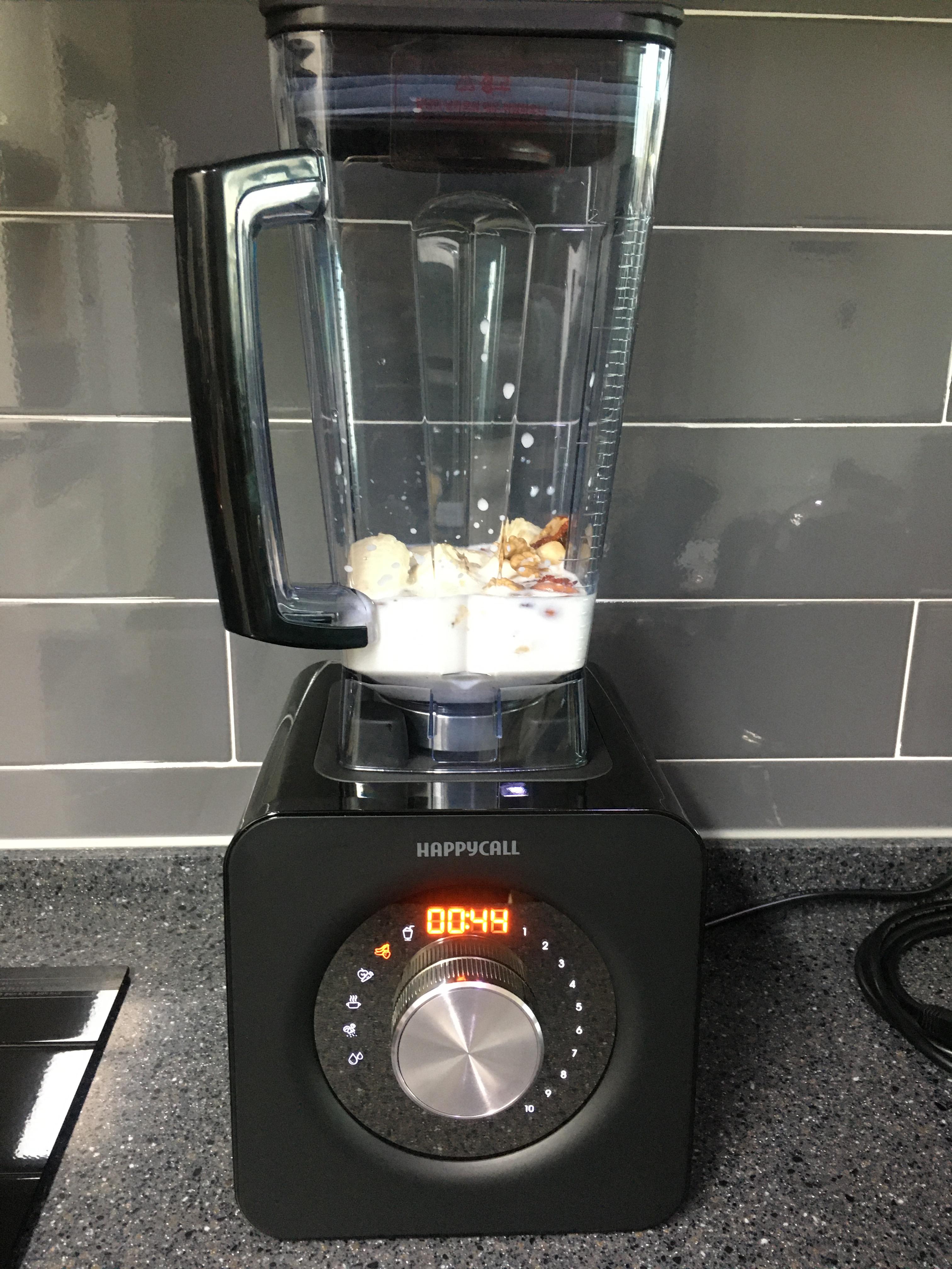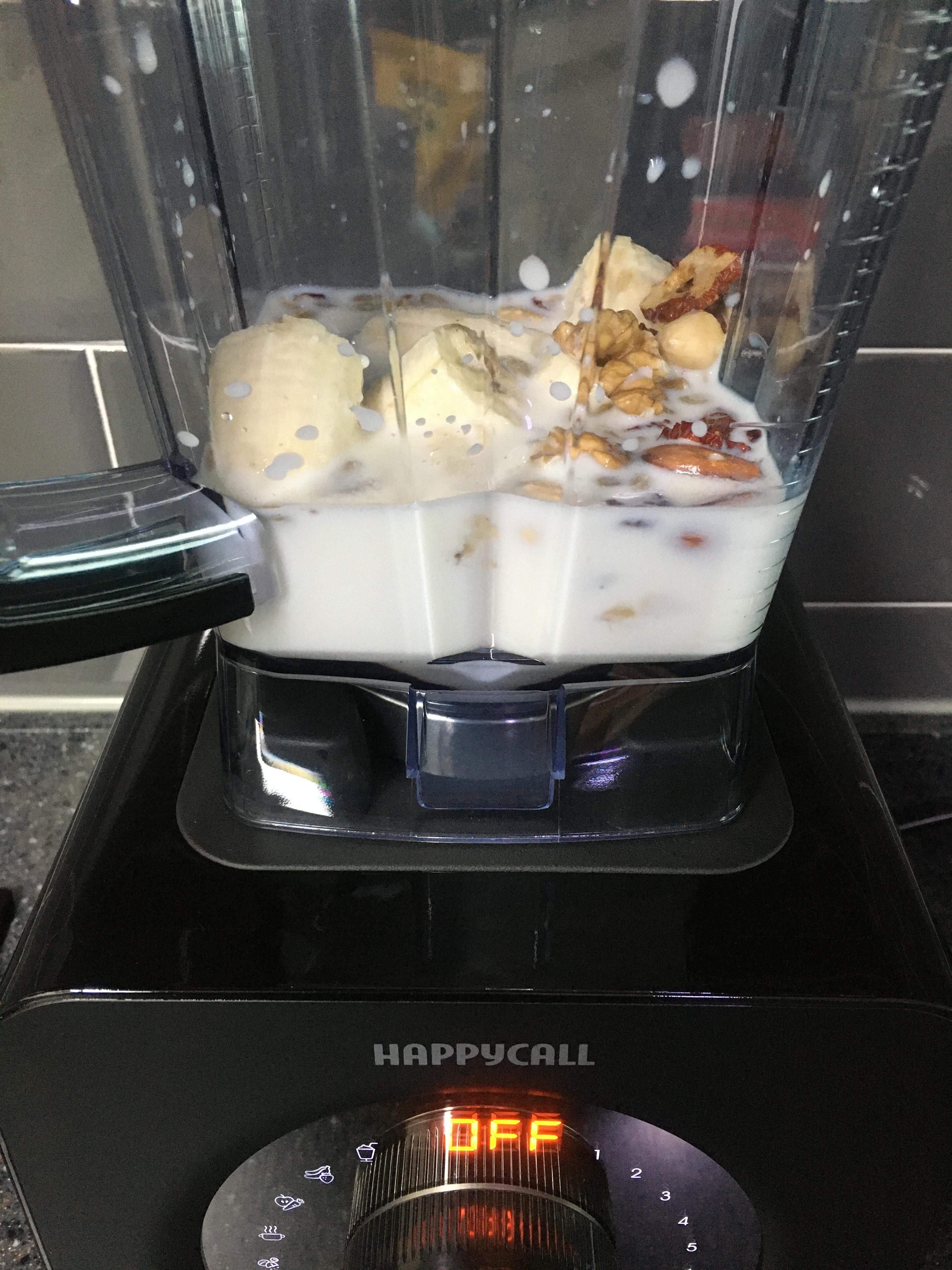 어떻게든 먹어보고자 이번에 새로 산 최신형 믹서기에 바나나와 견과류를 '흰뚱바'와 함께 넣고 갈았습니다.